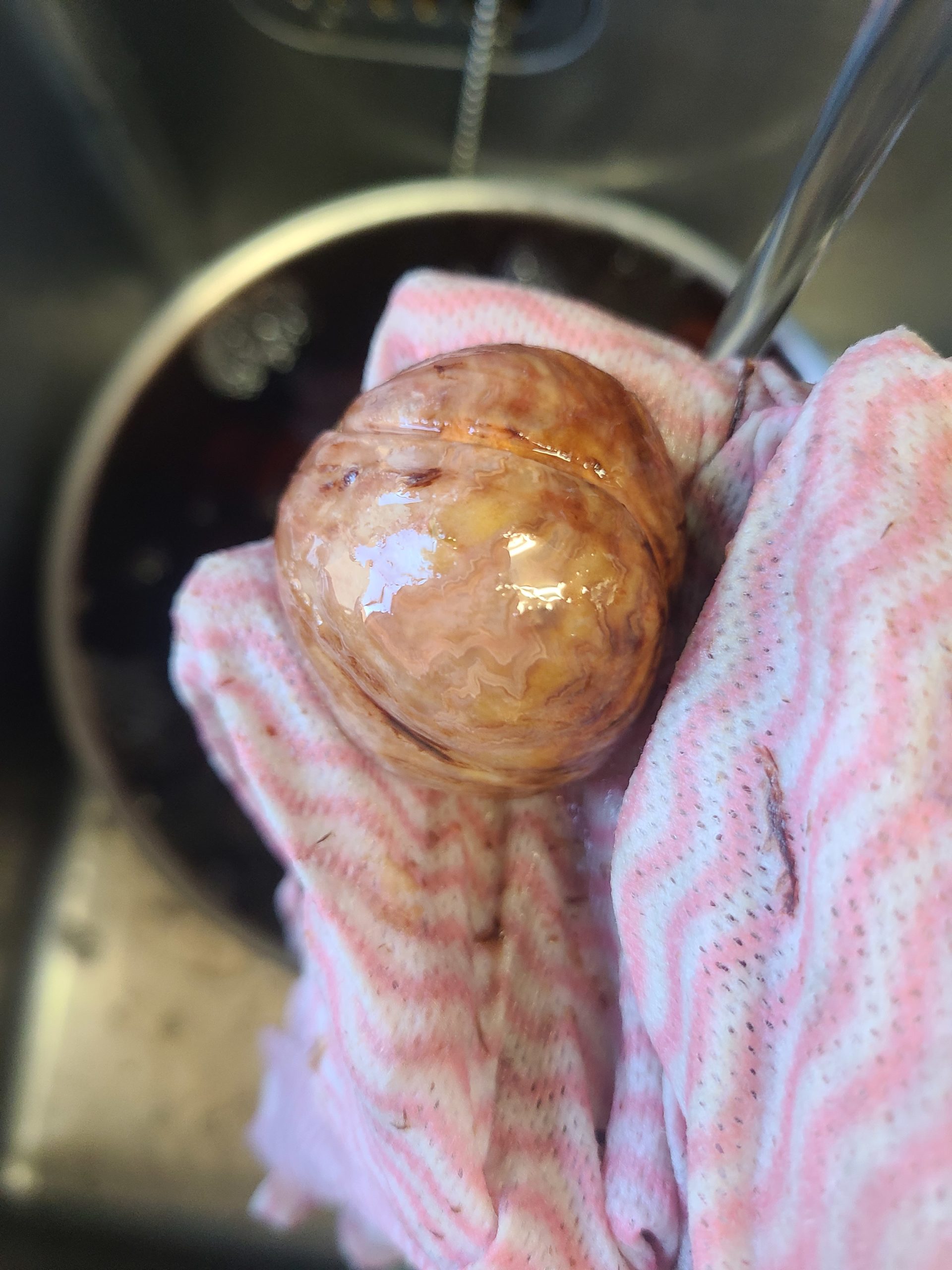 甘露煮にするとパンクしてしまうから慎重に磨いていきます。