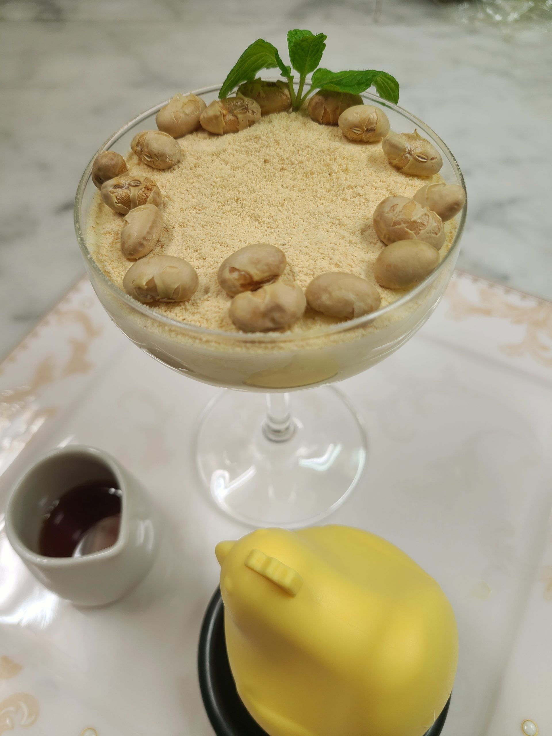 炒り大豆、きな粉生プリン。カリカリの炒り大豆がアクセントおなり美味しいですよ!